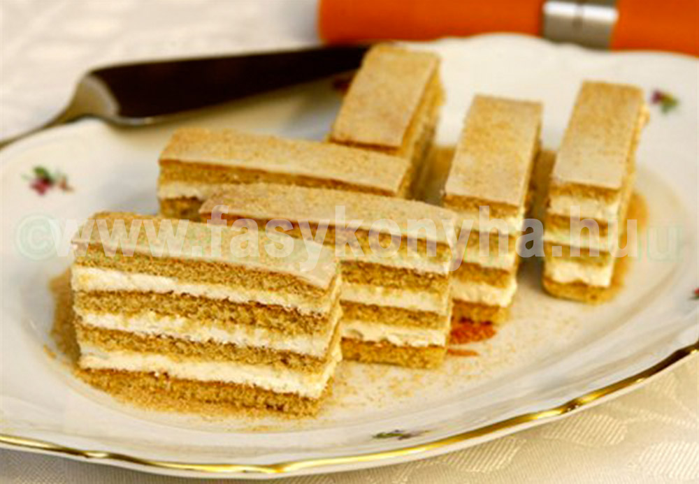 A lapokat egyenként megkenjük a krémmel és egymás tetejére helyezzük.