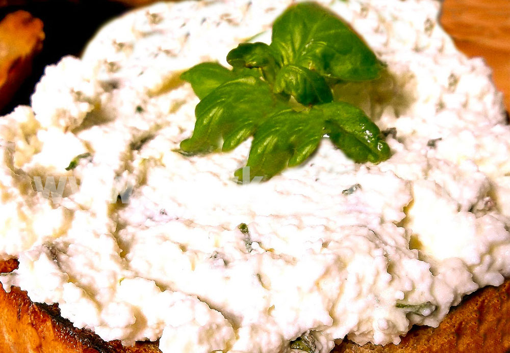 A fokhagymát és a bazsalikomot finomra vágjuk, összekeverjük a túróval, a tejföllel és az olajjal, majd sóval, borssal ízesítjük. Pirítósra kenve kínáljuk.